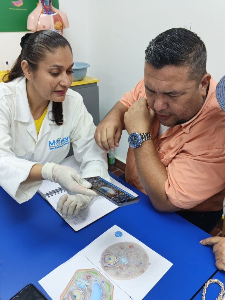 En la tarde, el segundo grupo recibió formación en biología, explorando nuevas formas tecnológicas y didácticas de enseñar conceptos esenciales. Se mostraron recursos como pictogramas, dinámicas participativas y actividades que fomentan la curiosidad, reforzando la idea de que el aprendizaje debe motivar y despertar la pasión por el conocimiento en los niños.