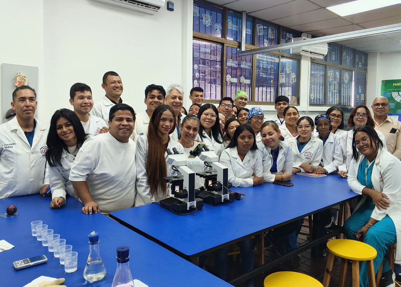 Durante la jornada, los profesores guiaron a los estudiantes en un recorrido enfocado en el área de la salud, con prácticas en el laboratorio de física que abordaron la aplicación de esta ciencia en campos como la biofísica y la imagenología. Además, exploraron modelos anatómicos a escala, representaciones tridimensionales de células animales y vegetales, y muestras observadas al microscopio, reforzando la conexión entre teoría y práctica médica.