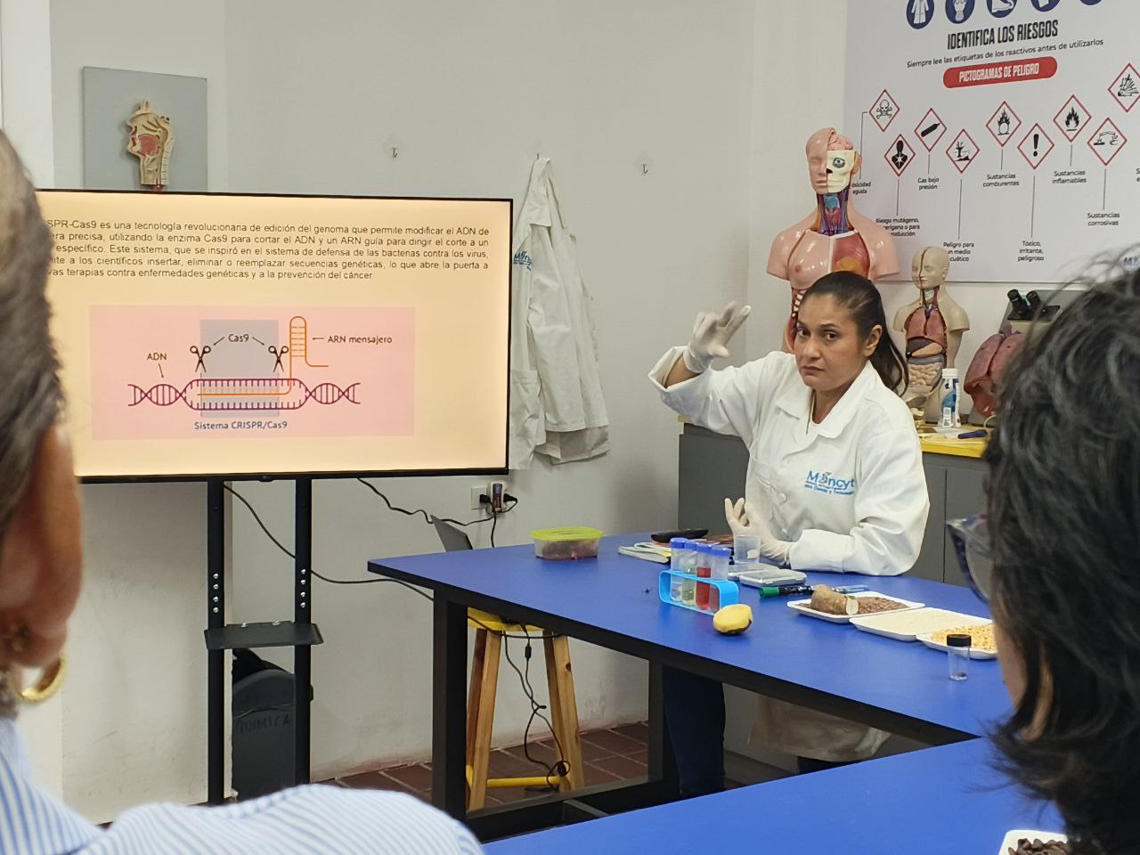 Durante el módulo de biología, se mostró a los profesionales nuevas alternativas de enseñanza, basadas en la necesidad de fomentar la curiosidad y aprovechar los beneficios de la metodología STEM. Usando, por ejemplo, imágenes, pictogramas y canciones como una alternativa lúdica para enseñar temas centrales como la anatomía y las diferentes ramas de la biología.